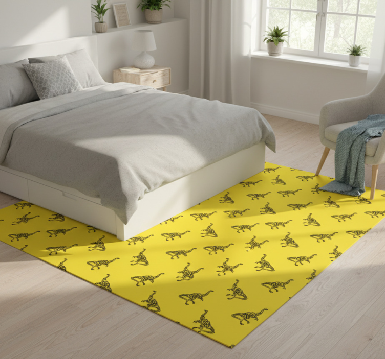 Brachiosaurus symbols on yellow bedroom vinyl rug