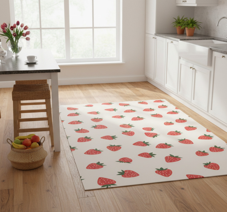 The Cherry fruit design kitchen vinyl rug creates a lively atmosphere in any kitchen! Its charming cherry motif brightens up the space, making it perfect for those who love a splash of color in their home. This kitchen vinyl rug not only serves as a functional element but also as a stunning decorative feature that brings joy and warmth to your cooking area. Let your kitchen reflect your personality with this delightful design!