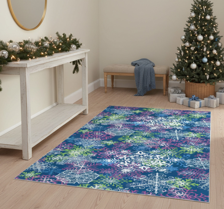 Christmas vinyl rug with glowing snowflakes on blue