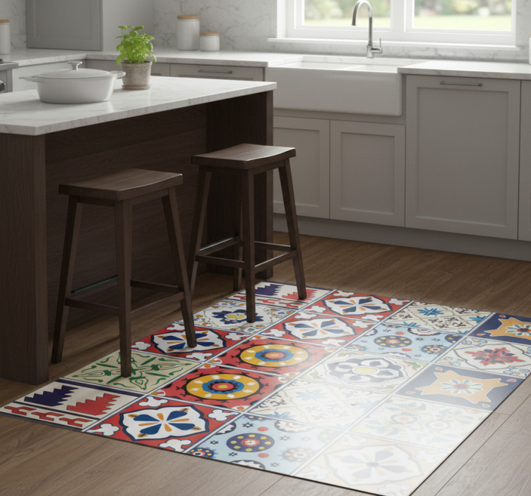 The Colorful ornamental tiles kitchen vinyl rug is not just a functional piece; it is a vibrant expression of style! Perfect for adding a pop of color to your kitchen, this kitchen vinyl rug can seamlessly blend with various decor styles. Its lively patterns inspire creativity and warmth, making your kitchen a more inviting place to gather and enjoy meals. Elevate your space effortlessly!
