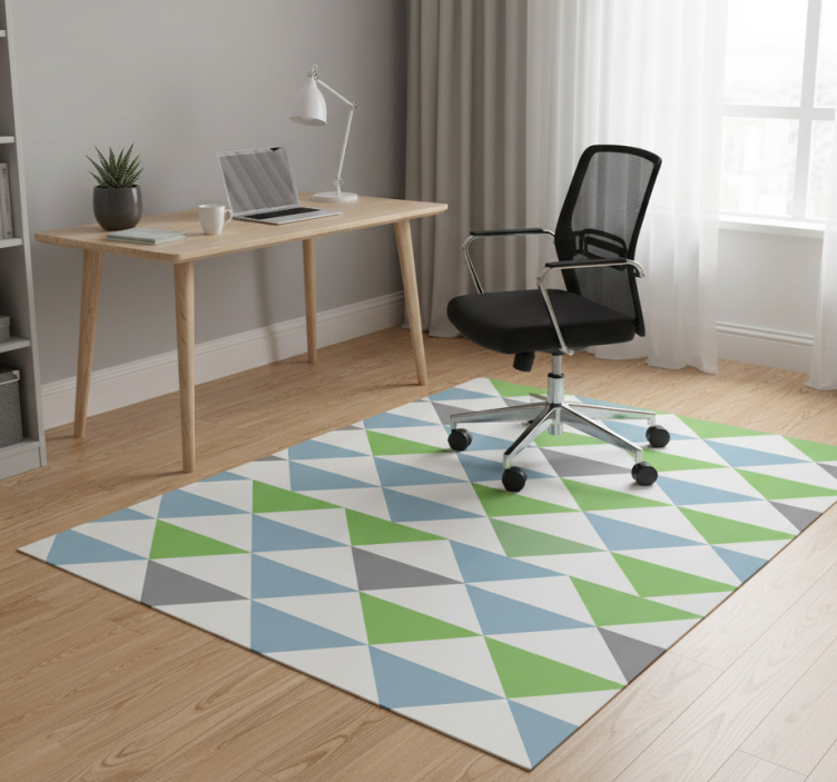 Reference: R24128Transform your workspace with the vibrant and delightful Colorful pastel triangles office vinyl rug! This unique design features an eye-catching assortment of pastel triangles that adds a cheerful touch to any office decor. The combination of colors not only brightens the space but also creates an inviting atmosphere that fosters creativity and productivity. Perfect for those who appreciate aesthetics and comfort, this rug is designed to stand out while providing a cozy feel underfoot.