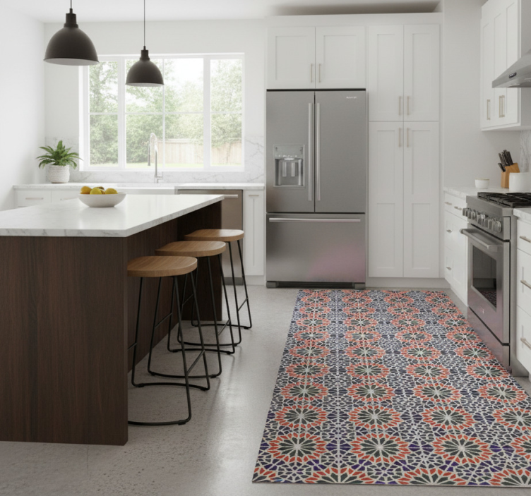 Elevate your kitchen’s style with the Cool colourful tiles kitchen vinyl rug. This kitchen vinyl rug serves as a canvas for creativity, effortlessly blending functionality and artistic expression. Imagine having a space that radiates warmth and joy, inviting family and friends to gather. Its vibrant colors inspire a lively atmosphere, making every meal a celebration!