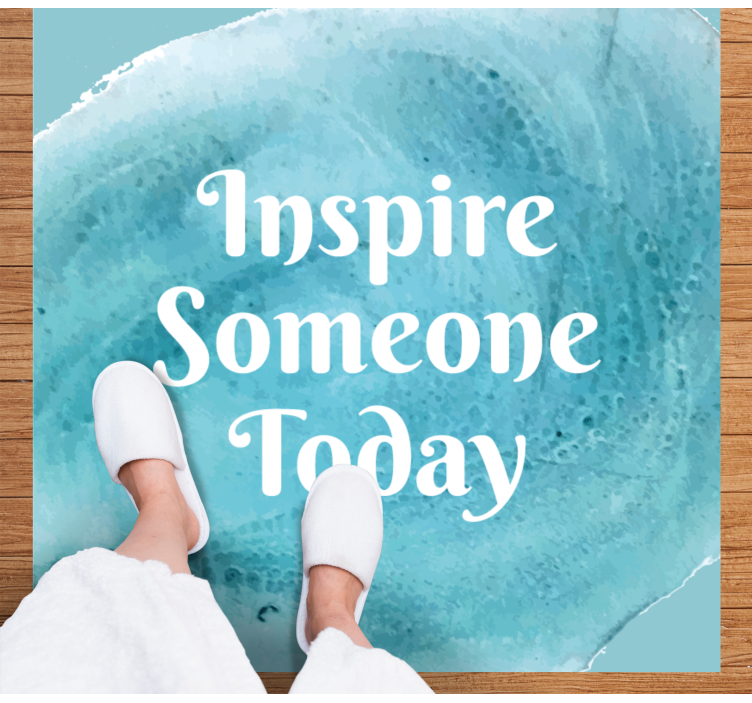 Transform your space with our stunning Custom vinyl rug inspirational quote design. This exquisite piece features an abstract watercolor design with brush strokes that inspire and motivate anyone who steps on it. The teal hues beautifully blend with uplifting text, creating a vibrant atmosphere that encourages positivity and inspiration every day!