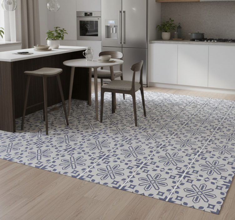 The cute blue and white tile pattern kitchen vinyl rug will elevate your kitchen's decor, bringing a touch of elegance and style. Its delightful design not only enhances the beauty of your space but also inspires creativity in your culinary adventures. This kitchen vinyl rug serves as a stunning focal point that invites warmth and joy into your home!