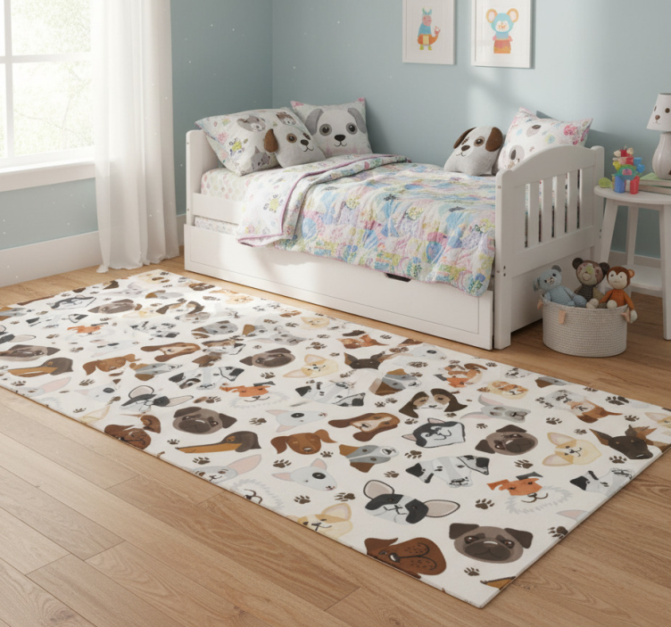 Cute mix puppy and dog pattern bedroom vinyl rug