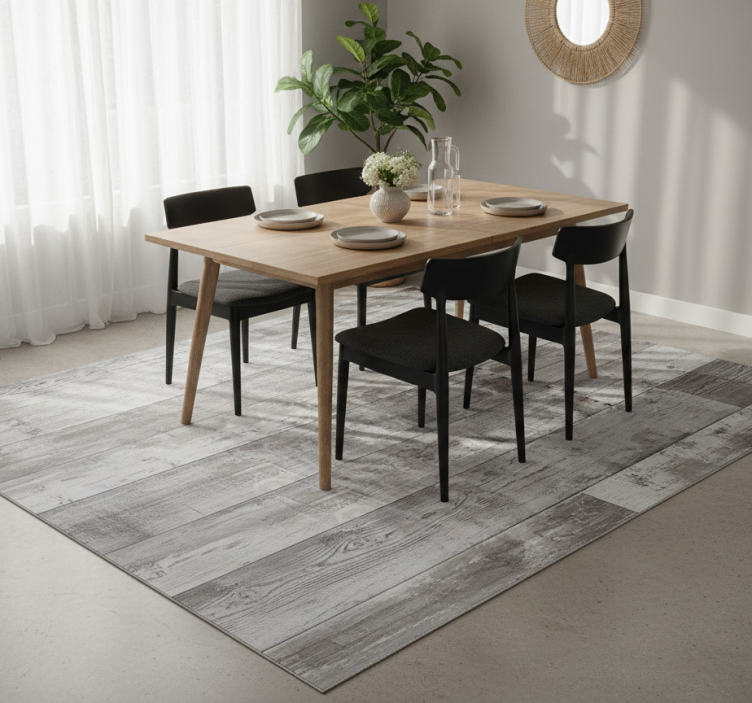 The Dining room vinyl rug in grey wooden planks dining room vinyl rug is not just a floor covering; it's a statement piece that enhances your decor. With its stylish design, this rug effortlessly complements both modern and traditional settings, adding character and charm to your dining room. Imagine hosting dinner parties where your guests admire the beautiful flooring beneath their feet!