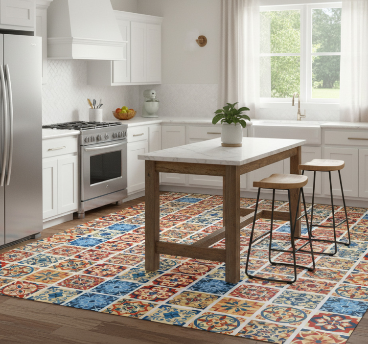 The Eraldo azulejos tiles kitchen vinyl rug is not just a practical choice; it's a statement piece that breathes life into your kitchen! With its stunning visuals and high-quality finish, this kitchen vinyl rug elevates your decor, creating a warm and inviting atmosphere. It's the perfect way to express your personal style while enjoying the comfort and functionality it brings to your home.