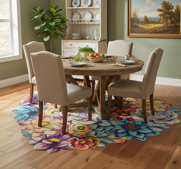 The Flower vinyl rug beautiful heart of blooms is a stunning addition to any space, showcasing a vibrant and intricate floral design that instantly brightens your room. Its rich colors and artistic patterns create a heartwarming atmosphere, making it the perfect decorative piece for your home.