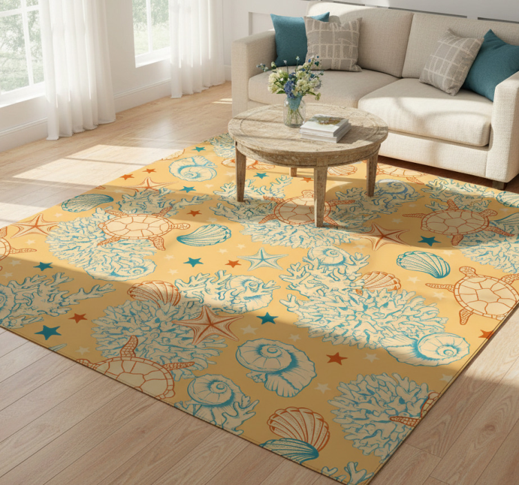 Flower vinyl rug coral and ocean life