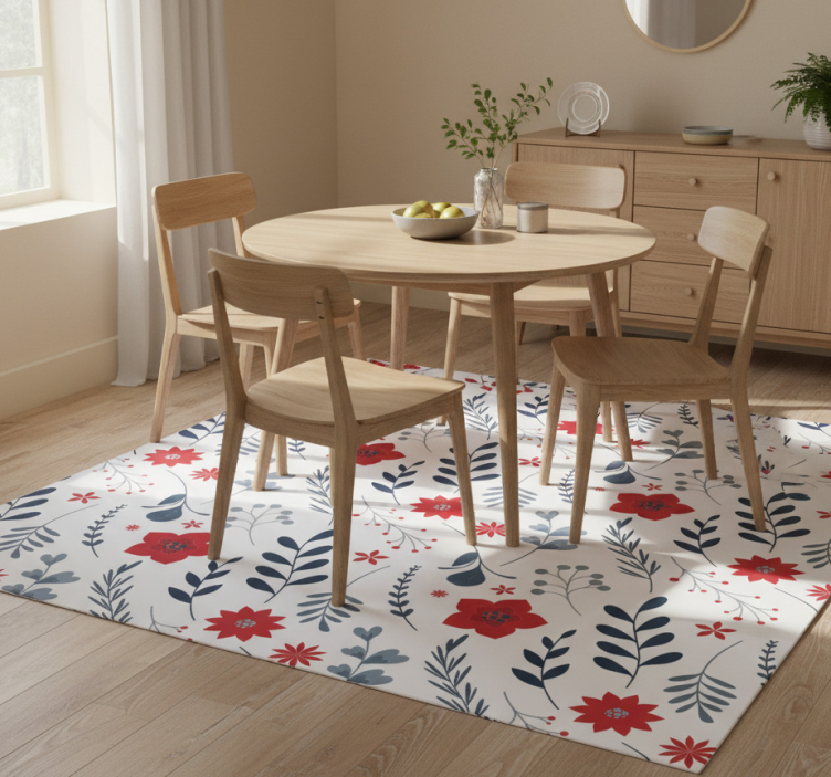 Flower vinyl rug in white and red floral pattern