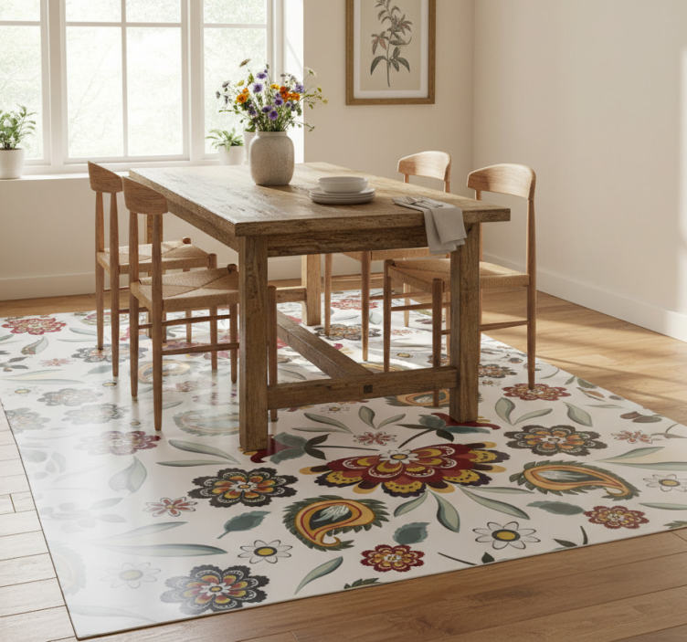 Flower vinyl rug in ethnic floral style