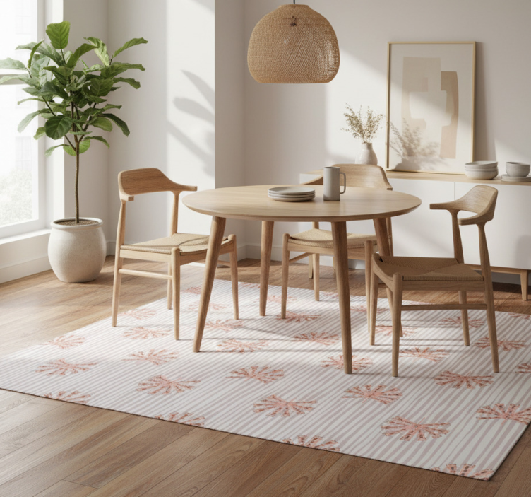 Flower vinyl rug geometric ornamental pastel pink flower
