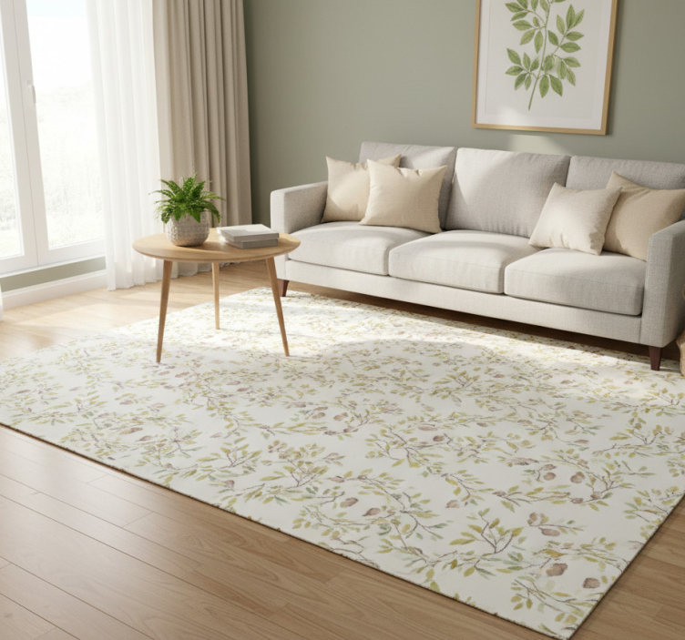 Flower vinyl rug original watercolor green leaves pattern