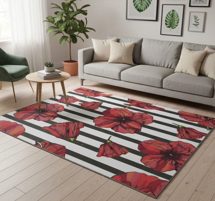 Flower vinyl rug polish poppy plants design