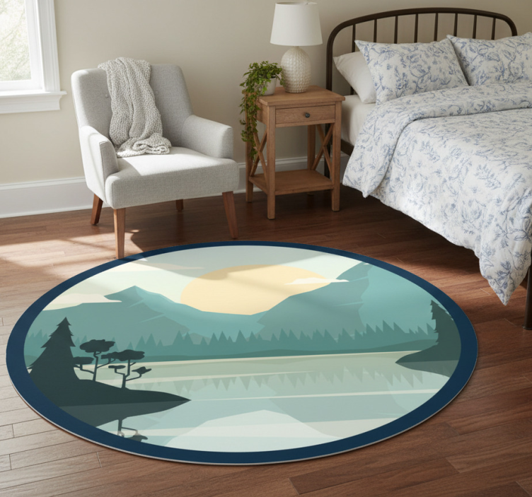Flower vinyl rug silhouette mountain with lake