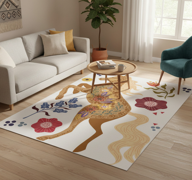 The Flower vinyl rug wild horse folklore design flower vinyl rug is more than just a decorative piece; it’s a celebration of nature's beauty! This rug inspires warmth and creativity, inviting a sense of joy and peace into your home. Its artistic flair can elevate your interior design, making your space feel more inviting and vibrant. Embrace the charm of this rug and enhance your decor effortlessly!