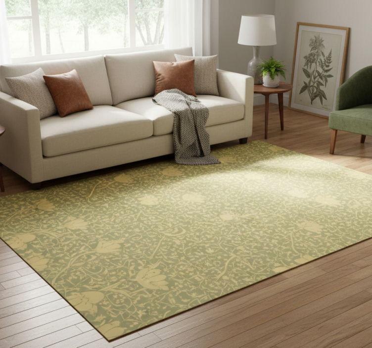 The Flower vinyl rug with a subtle gold and green pattern flower vinyl rug is ideal for adding a touch of sophistication to your home. Its vibrant design complements various decor styles, making it a versatile addition to your living room, bedroom, or hallway. The warm colors and floral elements create a welcoming ambiance, inspiring joy and relaxation in any space!