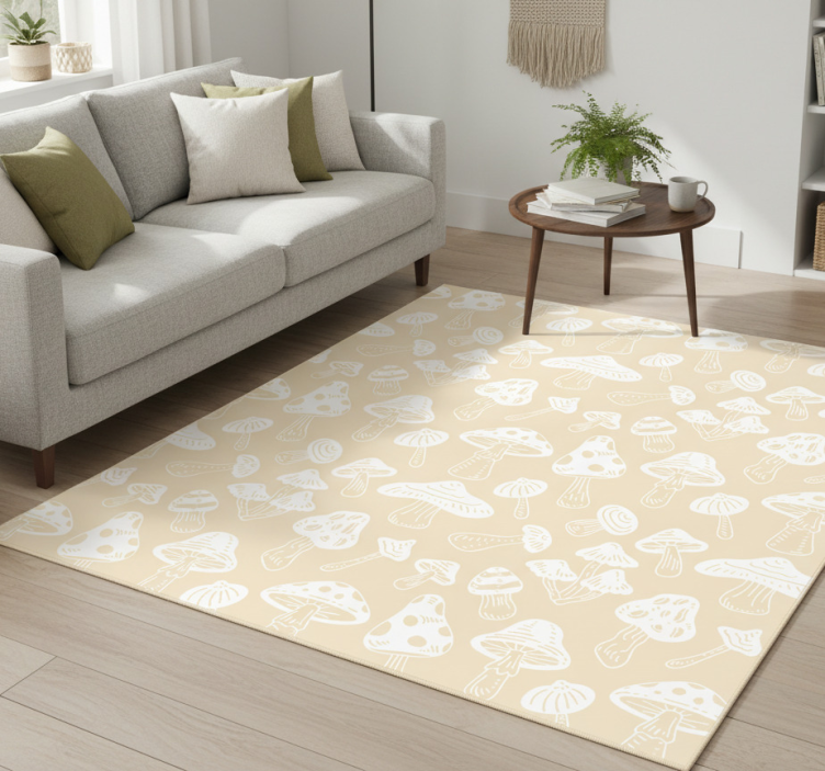 Flower vinyl rug with beige mushroom designs