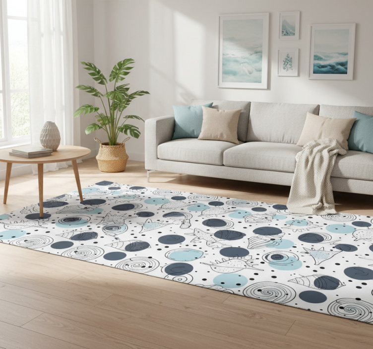 Flower vinyl rug with chic shell designs