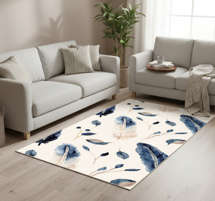 Flower vinyl rug with flying leaves and feathers