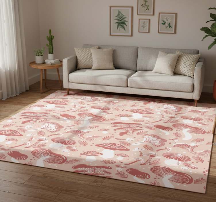 Flower vinyl rug with forest mushrooms on beige