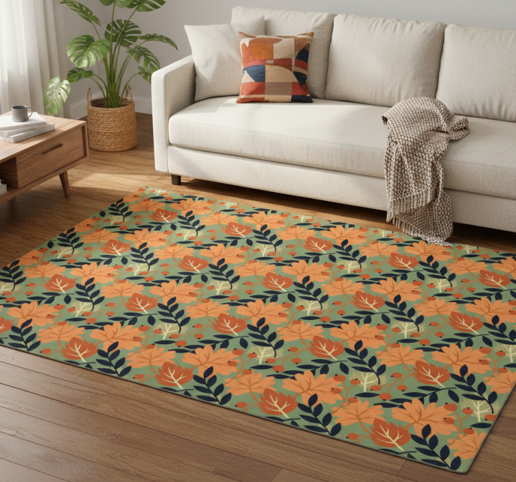 Caring for your Flower vinyl rug with large autumn leaves design is a breeze! Simply wipe it down with a damp cloth or mop to keep it looking fresh and vibrant. This easy maintenance ensures that your rug remains a beautiful centerpiece in your home for years to come.