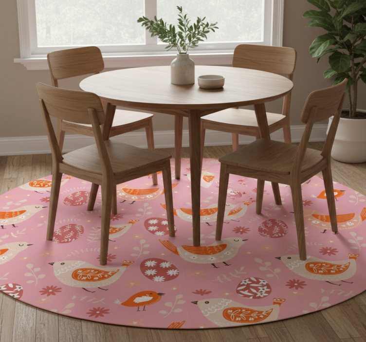 Flower vinyl rug with pink folk art birds