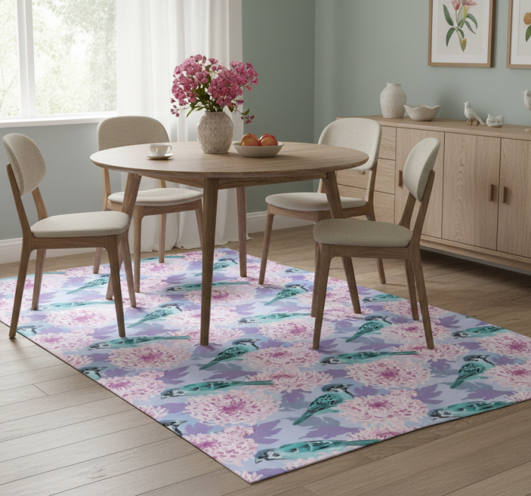 Flower vinyl rug with pink garden flowers and birds