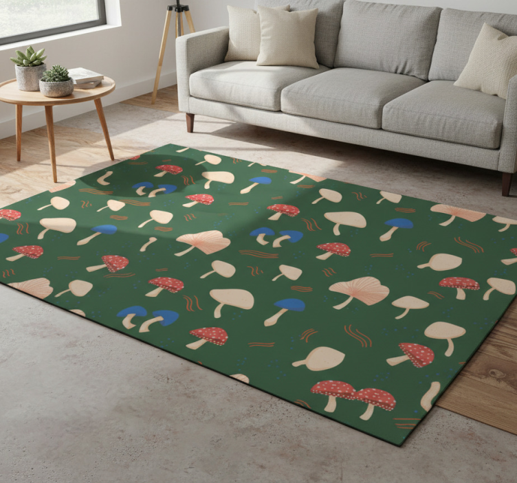 Flower vinyl rug with red and white mushrooms