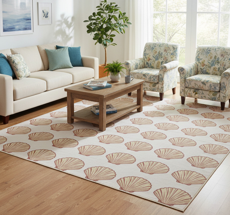 Flower vinyl rug with seashell design