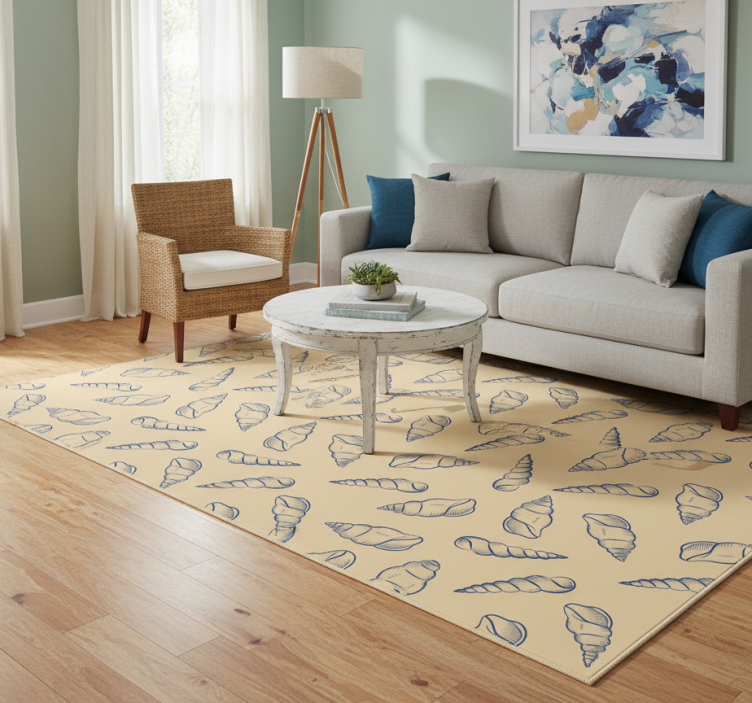 Flower vinyl rug with shell motif design