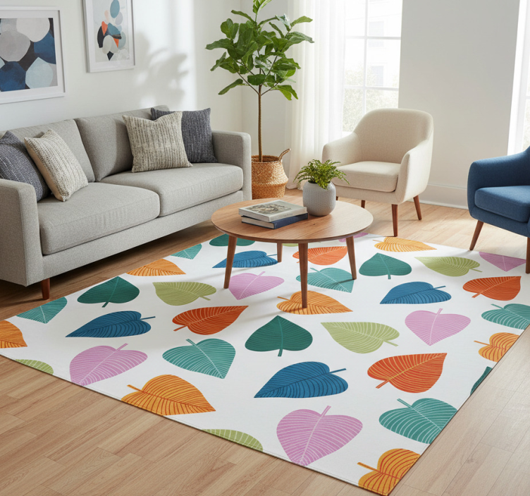 The Flower vinyl rug in original colorful leaves flower vinyl rug is not just a floor covering; it’s a statement piece that elevates your interior design. Its lively colors and unique design invite warmth and joy into your home, making every room feel inviting and cheerful. Transform your living space into a vibrant oasis with this eye-catching rug!
