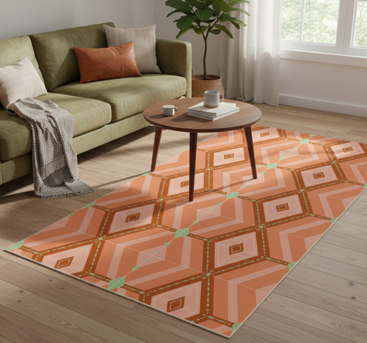 Reference: R21615Introducing our stunning Geometric vinyl rug in 30s autumnal hues that brings a vibrant and artistic touch to your space! With its beautiful geometric patterns and warm autumn-inspired colors, this rug adds a unique flair to any room. Its design not only captivates the eye but also complements a variety of decor styles, making it a versatile addition to your home.