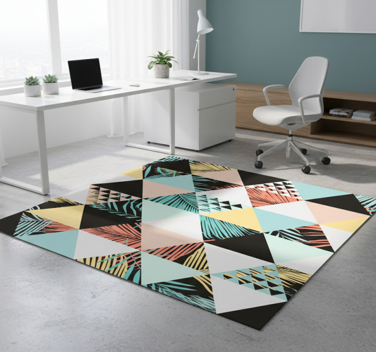 The Geometric vinyl rug jungle triangles geometric vinyl rug is the ideal choice for anyone looking to elevate their interior design. Its striking geometric patterns add a lively touch to your home, making it an instant conversation starter. This unique piece is perfect for any room, whether you want to brighten up your living room, bedroom, or play area. Let the vibrant design inspire creativity and joy in your space!