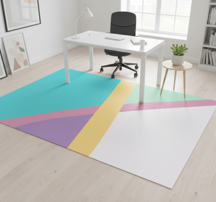 A Geometric vinyl rug with vibrant color blocks geometric vinyl rug is the perfect addition to any decor scheme! Its bold colors and modern design effortlessly elevate the ambiance of your space, creating a warm and inviting atmosphere. Imagine stepping into a room that exudes creativity and charm, all thanks to this fantastic rug. It's not just a decorative element; it's a statement piece that inspires joy and energy!