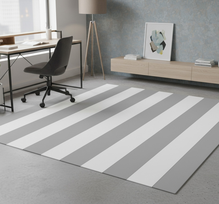 Grey and white stripes office vinyl rug