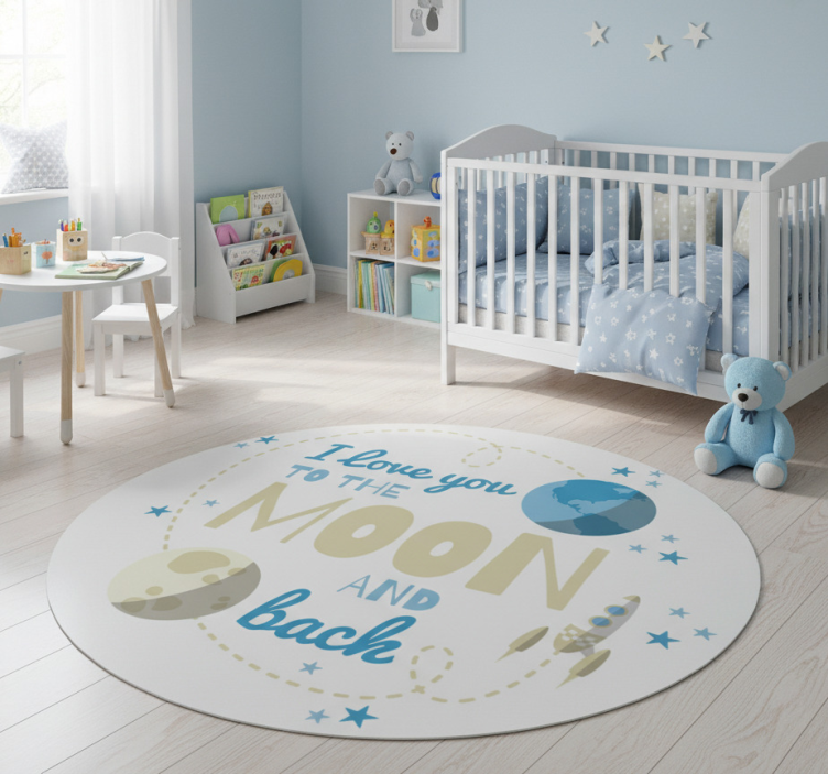 The Kids vinyl rug love you to the moon and back kids vinyl rug is an inspiring choice for decorating your child's space! Its unique design not only brightens the room but also creates a cozy area for play and relaxation. Imagine your child’s joy as they explore their imagination on a rug that radiates warmth and love. Transform their environment into a haven of creativity and comfort with this charming piece!