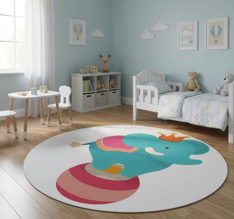 The Kids vinyl rug with balancing elephant design kids vinyl rug is an ideal choice for decoration as it brings joy and whimsy to any space. Its enchanting design creates a cheerful environment that encourages creativity and play. A vibrant rug like this not only adds a splash of color but also serves as a cozy spot for your little ones to explore their imaginations!