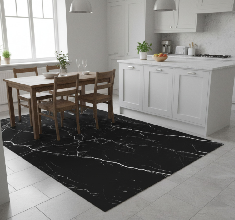 The Kitchen vinyl rug black marble kitchen vinyl rug is not just a practical addition to your kitchen; it is a statement piece that elevates your home decor. With its chic design, this rug effortlessly ties together your kitchen's aesthetics while offering comfort underfoot. Let it inspire your cooking and dining experiences, making every meal feel special!