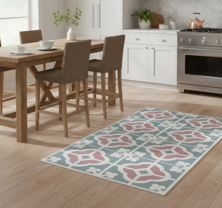 Reference: R21171Transform your kitchen into a vibrant oasis with our Kitchen vinyl rug floral hydraulic tile design. Featuring stunning floral patterns and a classic hydraulic tile look, this rug not only enhances your decor but also adds a touch of warmth and creativity to your space. With its easy-to-clean surface, anti-slip backing, and quality craftsmanship, this rug is both practical and beautiful, making it a perfect addition to any kitchen!