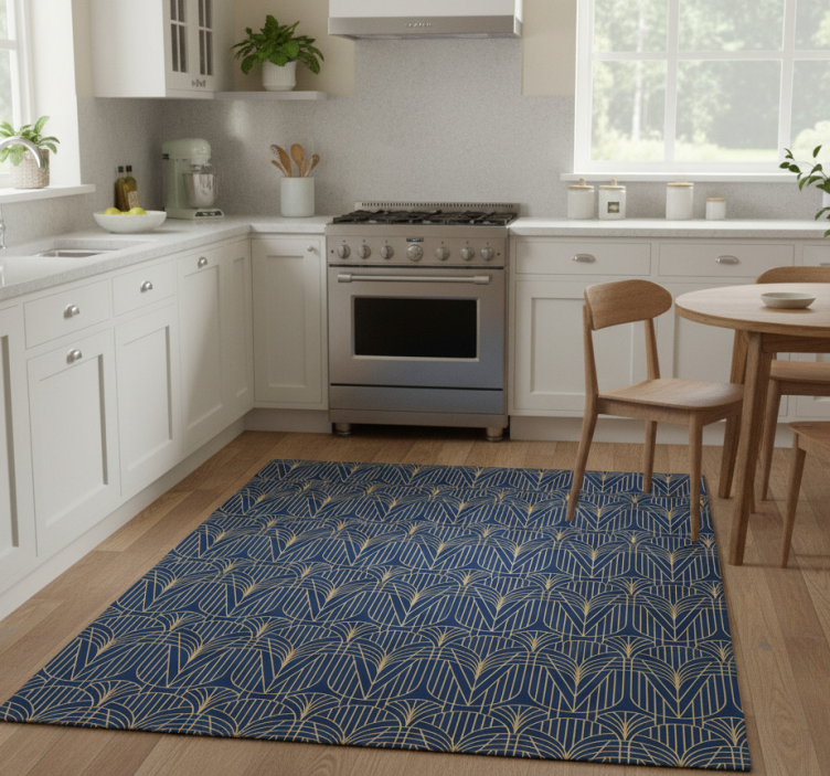 The Kitchen vinyl rug in art deco design with gold accents kitchen vinyl rug is a perfect choice for those looking to add a touch of elegance to their home. Its unique design brings a sense of sophistication to your kitchen while providing a cozy atmosphere. Imagine hosting friends and family in a space that radiates style and warmth, making every meal an occasion to remember!