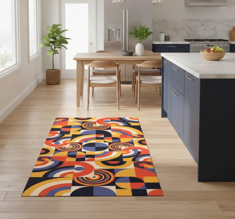 Kitchen vinyl rug in vibrant bauhaus circles