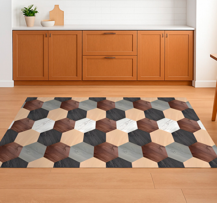Kitchen vinyl rug mixed wood hexagons