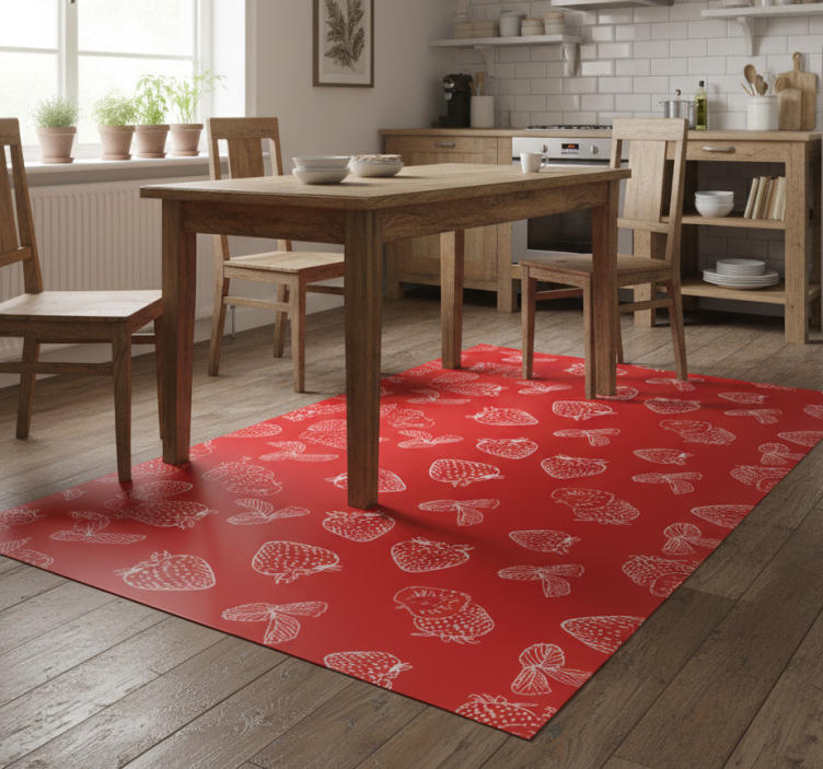 The Kitchen vinyl rug seamless strawberry doodle design kitchen vinyl rug is not just a functional piece but a stunning decoration that can elevate your kitchen's ambiance. The playful strawberry theme creates an inviting atmosphere, making it perfect for family gatherings or casual dining. Its vibrant colors and unique design will inspire joy and creativity in your cooking space!