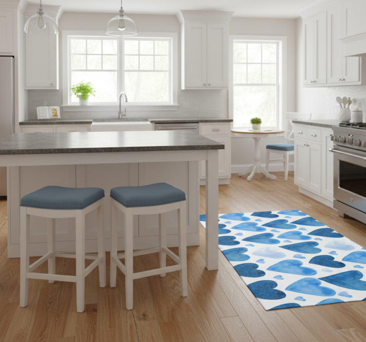 The Kitchen vinyl rug blue sweet hearts design kitchen vinyl rug is a must-have for anyone looking to elevate their kitchen's decor. Its heartwarming design brings joy and a touch of whimsy, turning an ordinary space into a delightful culinary retreat. Imagine the smiles it will bring to your family and friends as they gather in a space filled with warmth and charm!