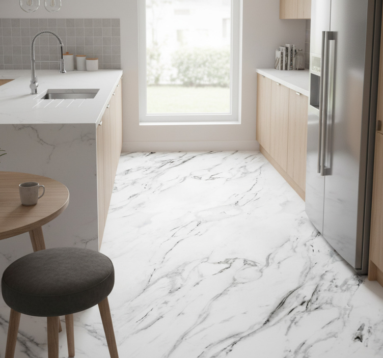 Reference: R23640Transform your kitchen into a stylish haven with our Kitchen vinyl rug white marble design. This exquisite rug boasts a stunning white marble pattern that adds elegance, while its easy-to-clean surface ensures that your space remains pristine. The anti-slip feature offers safety, and its scratch-resistant quality protects your floors, making it a perfect addition to any home.
