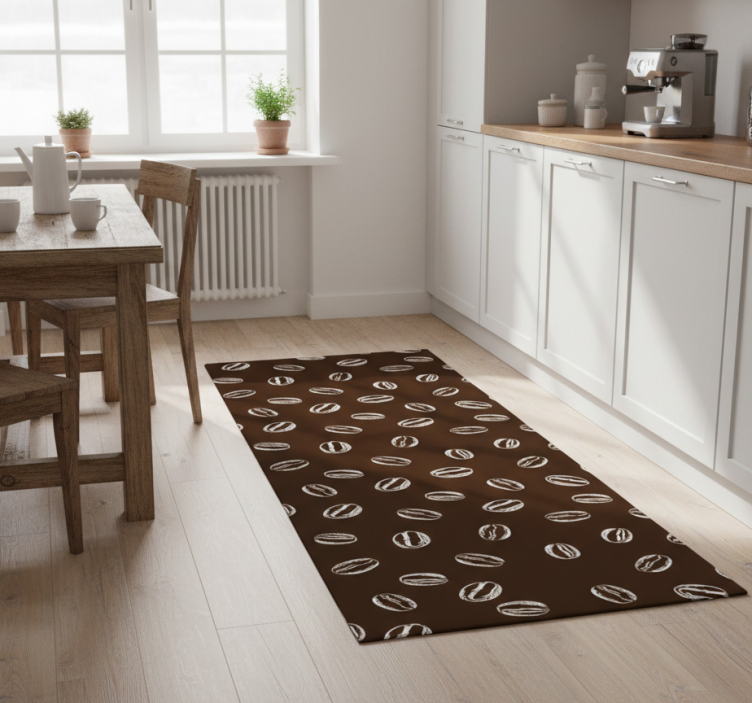 Kitchen vinyl rug with coffee beans pattern