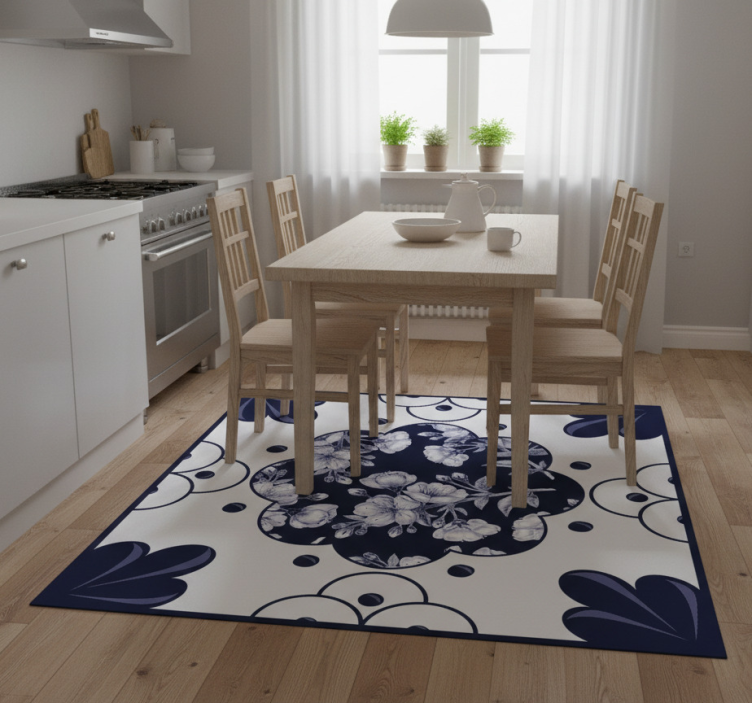 Kitchen vinyl rug with floral pattern tiles