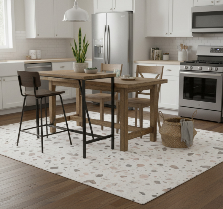 Kitchen vinyl rug with terrazzo design