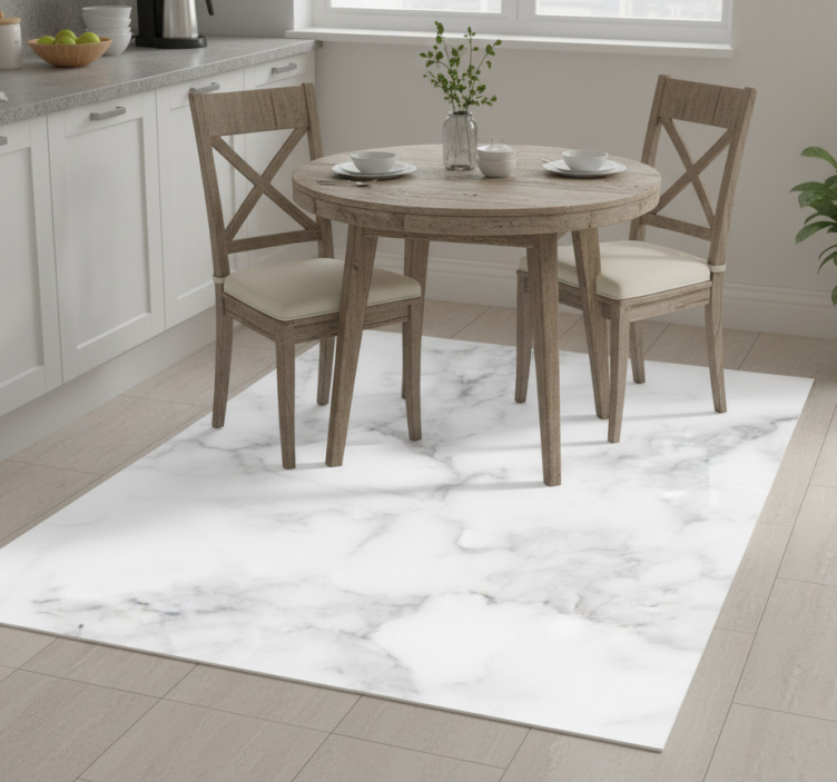 Reference: R23686Transform your kitchen into a stylish haven with our Kitchen vinyl rug with white marble texture. This stunning design features a beautiful marble pattern that adds elegance and sophistication to any space. With its easy-to-clean surface, anti-slip properties, and scratch-resistant material, this rug not only enhances your decor but also protects your floors from daily wear and tear while providing thermal insulation!